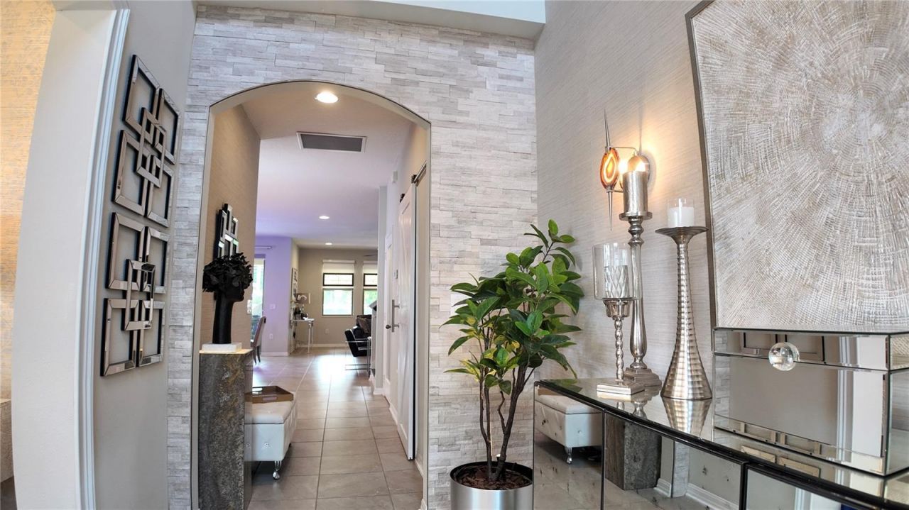 Welcome to 101 Philippe Court, original model by MI Homes and professionally designed and furnished by an interior designer. This stunning five-bedroom, three-bath home with flex space sits on a coveted oversized corner lot with conservation and water views. The rare four-car garage with tandem is perfect for a boat and single bay configuration perfect for a golf cart or vehicle. Expanded paver driveway, upgraded stonework and fresh exterior Sherwin-Williams Latitude paint extended-life coating. This home blends luxury upgrades, smart technology, and resort-style outdoor living, making it ideal for both entertaining and everyday comfort. The interior features granite and quartz countertops, built in pot filler plumbing upgrade, new upgraded GE Caf? appliances with a gas stove, a refrigerator with built-in Keurig coffee system, an apron-front stainless-steel sink, and Moen plumbing fixtures. The custom pantry with wood shelving and hidden barn door entry is a must see! Flooring includes upgraded luxury vinyl plank and porcelain tile throughout the main living areas, with designer carpeting and upgraded padding in the owner's suite. Architectural details include custom trim, stacked stone accents, arched openings, tray ceilings with beams in the owner's suite, designer lighting and fans, recessed lighting throughout, and a built-in electric fireplace feature wall with porcelain tile. The home offers a dedicated theater and bar room with Kraftmaid cabinetry, ceiling speakers with wifi-controlled color-changing lighting. Smart home features include app-controlled thermostat, switches, garage doors with Alexa compatibility. Additional upgrades include a motorized Hunter Douglas shade on the sliding glass door and custom drapery and window treatments throughout. Energy and comfort enhancements include an upgraded HVAC system w/ UV air purification, LED lighting, and gutters upgrade on two tier roof line. Outdoor living is designed for a true resort experience. This property is fully fenced with privacy walls, an oversized heated hydro pool spa with self-cleaning system, LED lighting, digital temperature control, and lounge seating. A motorized Sunsetter awning with LED lighting and new Sunbrella fabric provides additional shade. The backyard also includes a summer kitchen plumbed with natural gas, permitted gas fire pit with custom seating area with Adirondack chairs, expansive paver patio and walkways. A scenic pergola with an Italian stone fountain is on the front of the property able to be enjoyed from the extended front porch or second floors. Pond view is enjoyed from the front porch or second floor. The community offers HOA-maintained landscaping including palm tree trimming and up lighting, as well as access to a boat ramp and fishing dock. Proximity to amenities is ideal as the resort style pool is just steps away. The clubhouse includes a fitness center, playroom, theater, and entertainment space, along with on-site management. Furnishings are negotiable depending on the offer. Schedule your showing today. Use our preferred lender and get 2k toward closing cost. Purchase this home, if YOU Are Not Satisfied, We'll SELL IT FOR FREE! *First Responders and Military Members Ask About our appreciation discount. Exclusive offer...Purchase this home with VA 0% DOWN available for those who qualify. Rate buydown options available! For more information on these exclusive offers call the listing aagent directly see the info below.