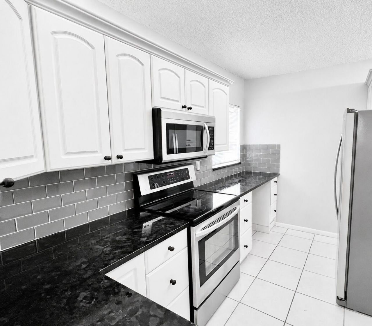 End unit, 2 bedroom 2 bathroom, first floor condo features a modern feel with tile flooring throughout and laminate in the second bedroom. The updated kitchen includes stainless steel appliances, and there's plenty of closet space and the added bonus of a washer and dryer in the condo for your convenience. Step outside to enjoy a park like setting right at your back door and the community pool just a short walk away. This is an all age community located conveniently in Delray Beach.